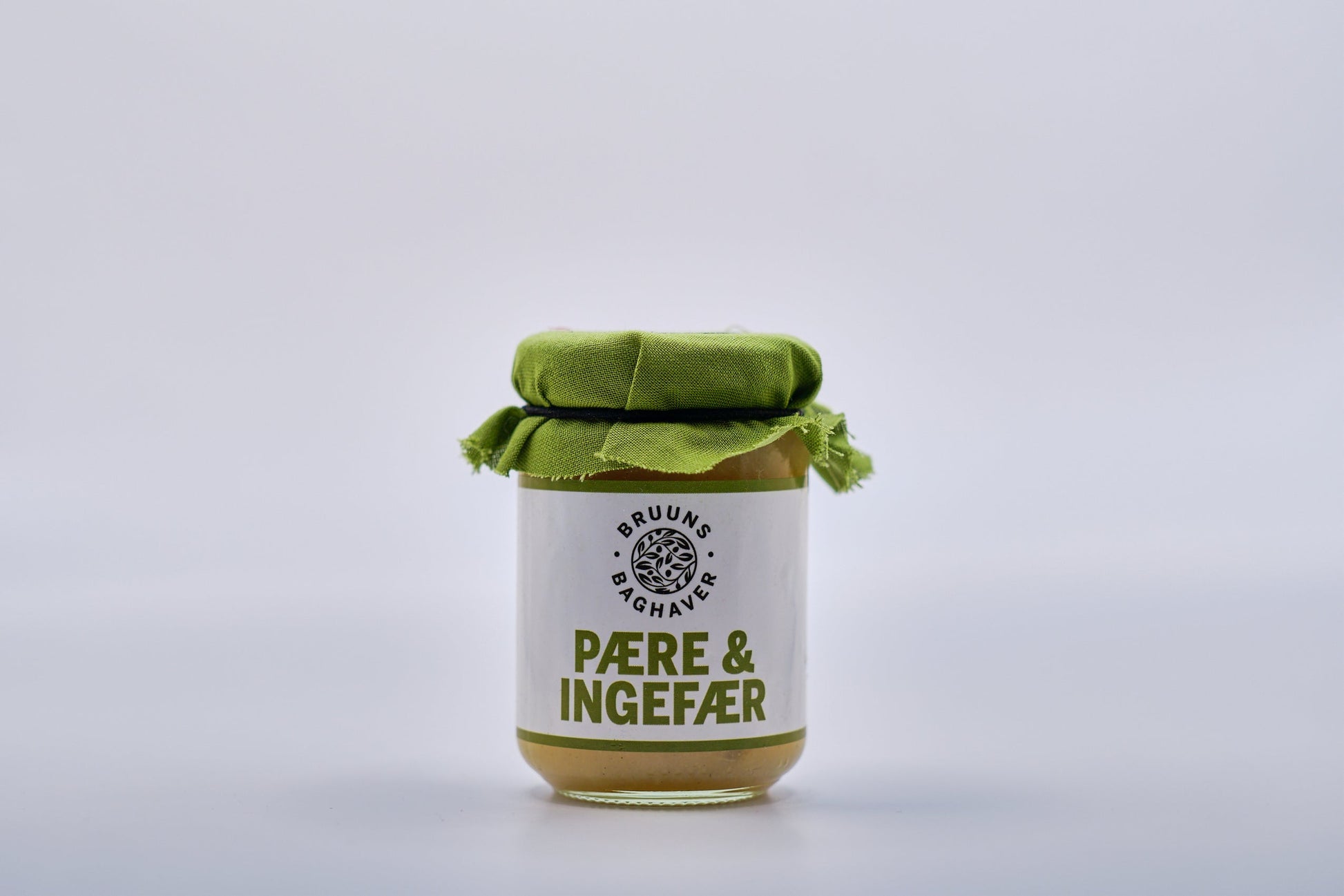 Syltetøj på danske Clara Friis-pærer tilsat frisk ingefær under kogningen. Smagt til med økologisk rørsukker, siciliansk citronsaft og vores balinesiske vanilje. Smagen er frisk, naturligt sød og med et hint af styrken fra den friske ingefær.